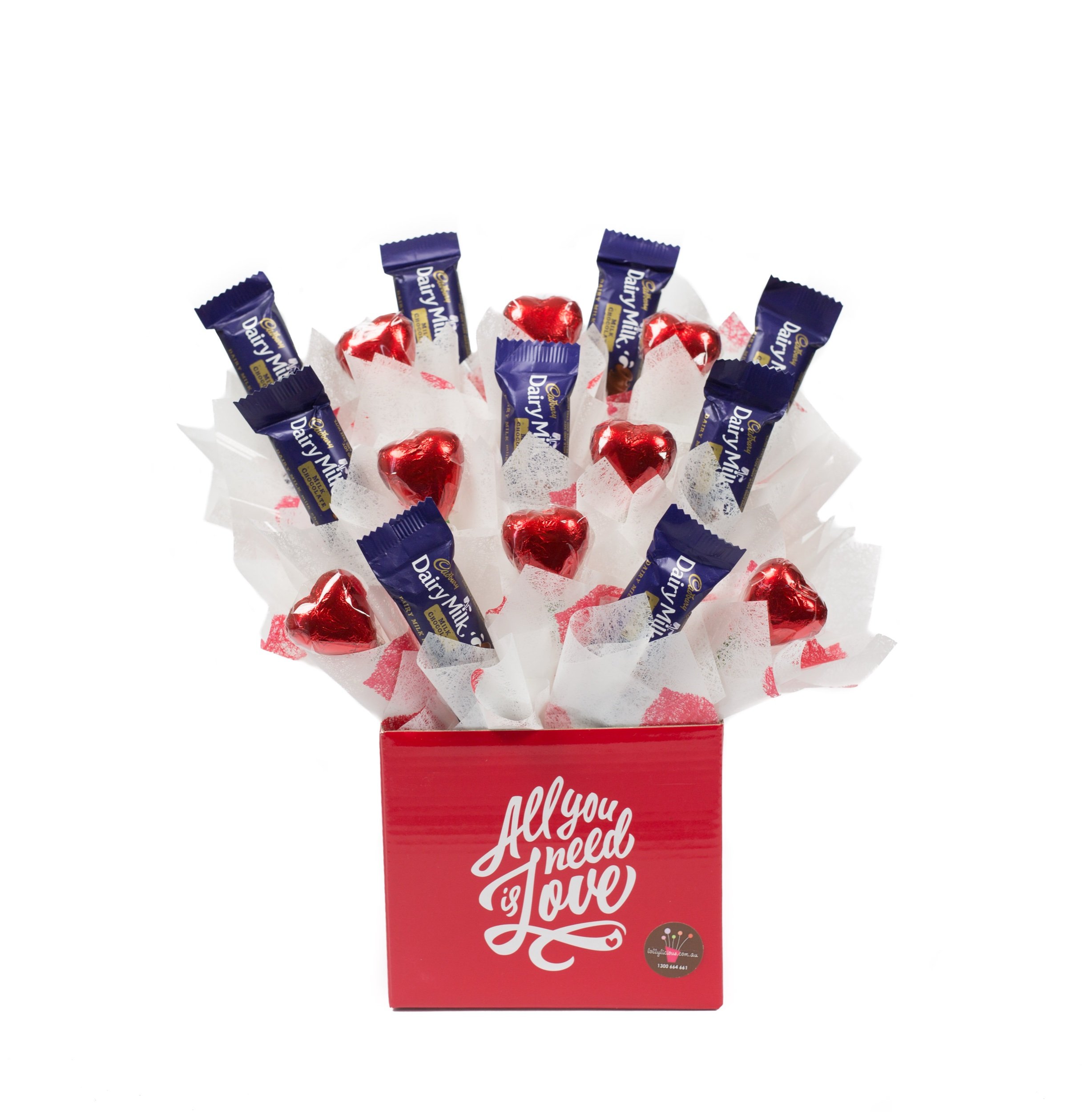 Meet your new best friend — sweet, delicious, and impossible to resist! This charming arrangement combines nine Cadbury Dairy Milk fun-size chocolates with eight smooth, foil-covered Belgian milk chocolate hearts. Standing approximately 30cm tall, it’s suitable for gluten-free* chocolate lovers and comes with a complimentary message card to make your gift complete.